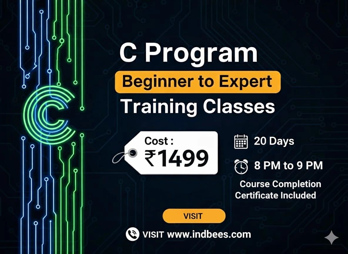 Lets join our C programing Beginner to Expert in 21 days training program with course completion certificate at just Rs. 1499 Only. Register now